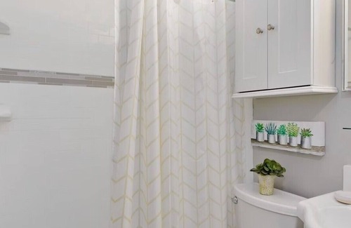 The fully equipped kitchen features an electric range, refrigerator, and dishwasher. We’ve stocked it with everything you need to prepare meals: pots and pans, cutting boards, knives, blender, toaster, mixing bowls, and measuring tools. You’ll also find a full-size coffee maker with starter coffee, a complete set of dishes, glasses, cups, and silverware. We include condiments and essential pantry items to make your stay stress-free.