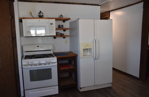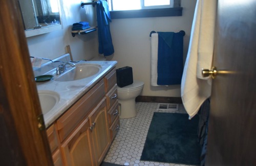 This Drummond farmhouse boasts 3 inviting bedrooms with 1 king bed and 2 queen beds. The cozy living room includes a futon for extra sleeping space. Enjoy the convenience of amenities like AC, heating, WiFi, and a washing machine. With 2 bathrooms equipped with hair dryers and showers, guests will feel right at home.