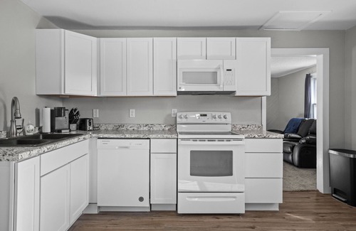 Fully renovated home just a few blocks from the hospital. Large sunroom/enclosed porch, large living room, downstairs family room, 3 bedrooms two living spaces, and 2 nicely remodeled bathrooms. Fully remodeled kitchen with all the amenities & appliances you'll need. 2 Bedrooms are set up with queen beds, and the 3rd room is set up with 2 twin beds. Washer & Dryer, plus office space! A very short walk or drive to the hospital, shopping, dining, and parks.