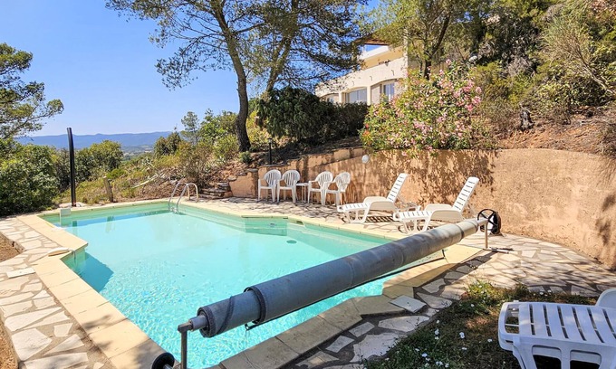This beautifully situated vacation home with private pool in the Herault is located on a lovely wooded hill on the edge of the picturesque village of Pierrerue, surrounded by garrigue. Arrive here and feel right at home. Here you will find everything you need for a carefree vacation. Below the terrace, on the lowest level of the villa, you will find a separate apartment. This makes the vacation home ideal for two couples, for example, who each want their own privacy.