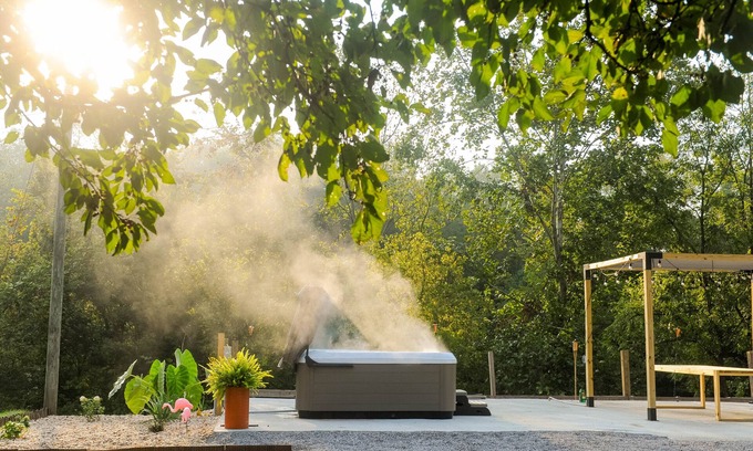 Featuring a private patio with a hot tub, outdoor dining area, lounge chairs and a fire pit (wood provided), our space is private and welcoming for families and friends to gather and create memories together.