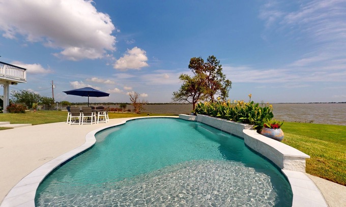 Escape to this stunning bay house in Baytown, TX, where you can enjoy the outdoor pool and breathtaking water views right from the comfort of your vacation rental. This spacious home is perfect for a family or groups, offering over an acre of land for endless fun and relaxation.