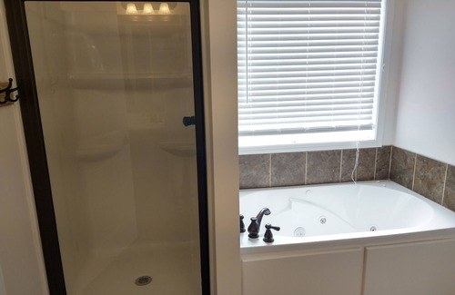 Bedroom 1 has an en suite bathroom with stall shower and jetted tub. Bedroom 2 and 3 have access to a hall bathroom with tub/shower combo.
