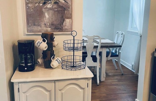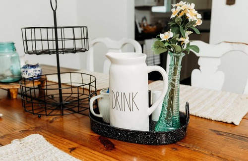 Our cozy creekside cottage offers a spacious and comfortable layout designed to help you relax and feel right at home. There’s a large, private driveway for your vehicle(s) when you arrive. You’ll use a code for the front door and there’s a side door available as well.