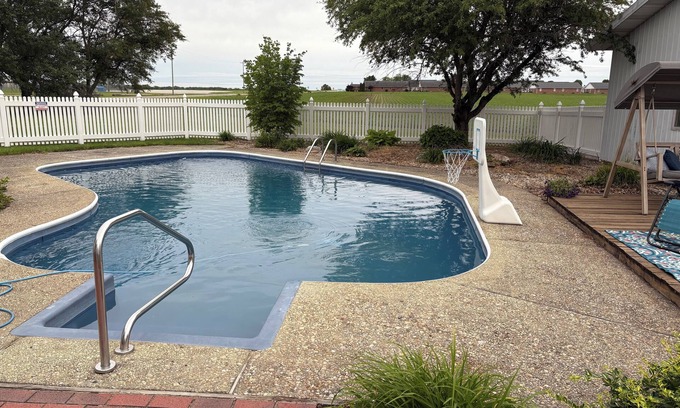 Located in Odon, this marvelous house boasts 3 bedrooms - 1 king bed and 2 queen beds. With 2 bathrooms equipped with a shower, bathtub, and hair dryer, guests will feel right at home. The additional living room space with a queen bed provides extra comfort for a fabulous stay. The house is located within 10 minutes to Crane Naval Base. Odon is a cute little Amish community with lots of hometown and Amish-made shops. You can also relax in a nice sized in-ground pool (open from Memorial Day to Labor Day). Also, the community park is located across the street for the kids to play at or just a nice sunset walk through the park. Our place will help you feel at home while you're traveling in Odon.
