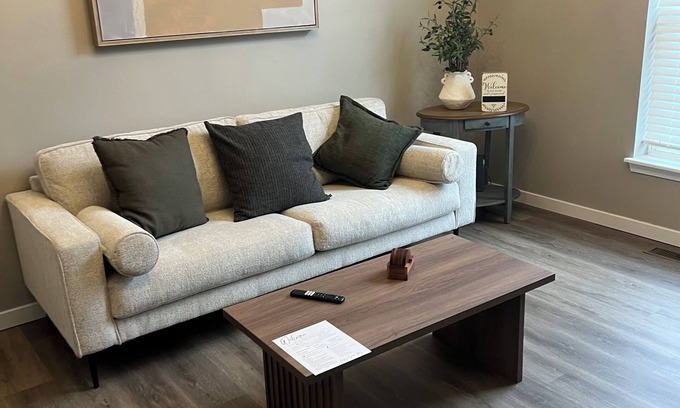 Located in Kearney, this adorable house offers 3 bedrooms: 1 king bed, 1 queen bed, 1 bunk bed, and 1 twin bed. With 2 bathrooms featuring a bathtub and shower, guests will feel right at home. The living room includes a cozy sofa bed for extra sleeping space. AC, WiFi, and a washing machine are just a few of the superb amenities provided. We hope you'll enjoy your stay at our house.