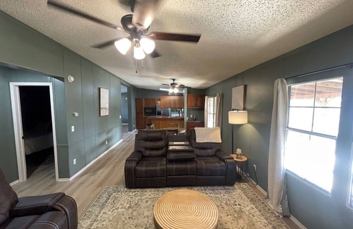 Unwind at Lake Eufaula in this lovely house. With 3 bedrooms including a king, queen, full, and twin bed, guests will have plenty of space to relax. The property features 2 bathrooms with showers and hair dryers for added convenience. Enjoy the peaceful surroundings and modern amenities like AC, heating, WiFi, iron, and a washing machine. Fall in love with Lake Eufaula and enjoy the magic it has to offer.