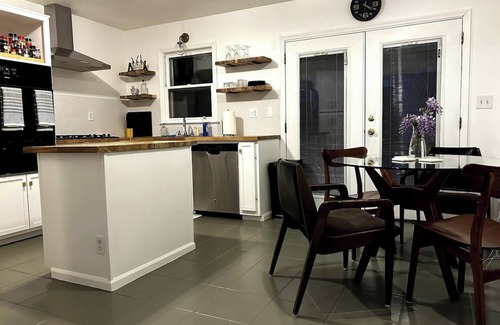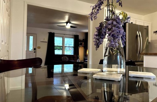 Discover the perfect blend of style and comfort in our 3-bedroom, 2-bathroom house. Experience stylish comfort in our 3-bedroom, 2-bath retreat with mid-century modern decor. Enjoy TVs in every room, a relaxing jacuzzi tub in the master, and a fully equipped gym with a pool table. Our home offers a unique blend of convenience and elegance, perfect for unwinding or staying active.