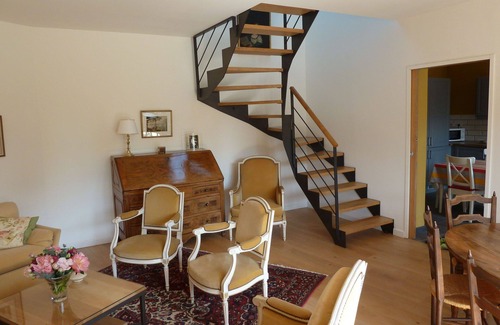 Our property has two houses, the main house which is not the subject of trade and a smaller house. The property we rent is a delightful 3 bedroom cottage style house in the large garden of our main residence. Bright, comfortable and completely renovated in 2015, it will welcome you back from your walks in the Normandy countryside. Next to the house we rent, is a traditional barn used as a summer dining room. It is equipped with a large barbecue, heated and decorated with antique brass. It is the perfect setting for long convivial meals with family or friends. The house is located in the heart of a traditional Norman village, next to the village square which has a bakery, well stocked grocery store and a newly opened restaurant. There is also a cozy wine bar to remind you that you are in France