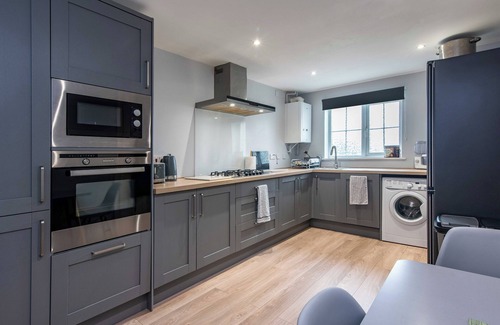 The fully equipped kitchen is perfect for preparing family meals or entertaining friends. For parking, there’s a main road option, as well as on-street parking available in a nearby cul-de-sac.