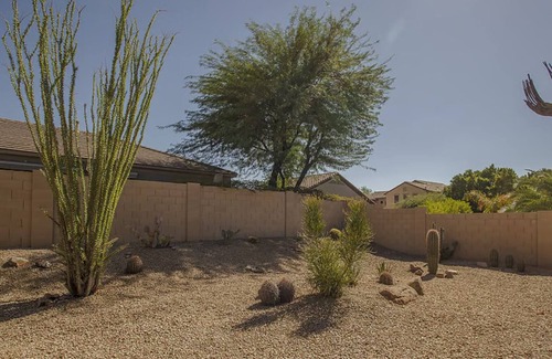 The Valley of the Sun is waiting for you at this 3-bedroom house. This comfortable property features 1 king bed and 2 queen beds, perfect for a comfortable stay. There is also an office with an inflatable bed available. . The 2 bathrooms include a bathtub for a relaxing soak after a day of exploring. Two community pools are nearby and easy access to I-17.