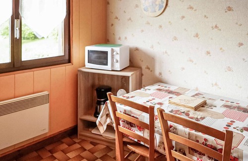 Spend relaxing days in simple but functional accommodation that offers you proximity to nature and a wide range of leisure activities. Take advantage of the location of this chalet to discover the Jura mountains in all their facets. The wooden walls and simple furnishings in the living area create a cosy atmosphere. Relax in the armchairs in front of the TV or take your meals at the dining table.