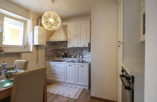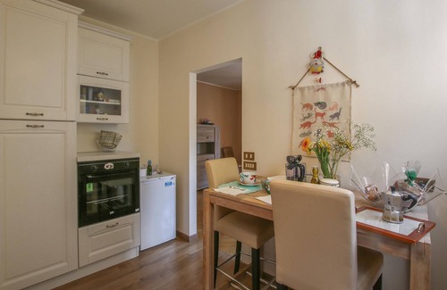 The apartment is located in charming Rovereto on the beautiful Adige River, between Trento and Verona, and therefore makes for an unforgettable vacation experience. If you prefer to stay close to the historic center, this pleasant accommodation is ideal for you. The inviting apartment is decorated in earthy tones and cream colors and exudes a warm, feel-good atmosphere. Relax here after your activities and cook your favorite dishes together.