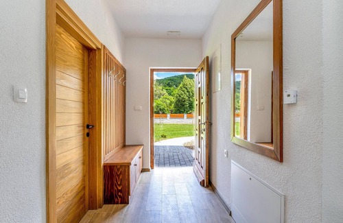 Not far from Gospi is this beautiful holiday home made of wood and stone, which was built in a special style. The modern house offers you plenty of space as a family and invites you to enjoy the amenities of the accommodation. Enjoy the atmosphere created by the combination of wooden elements and modern furniture and play board games at the dining table in the evening by the open fire. Take a stroll through the beautifully landscaped garden and swim your first laps in the swimming pool early in the morning. You can then plan your excursions and activities over breakfast and set off a little later.
