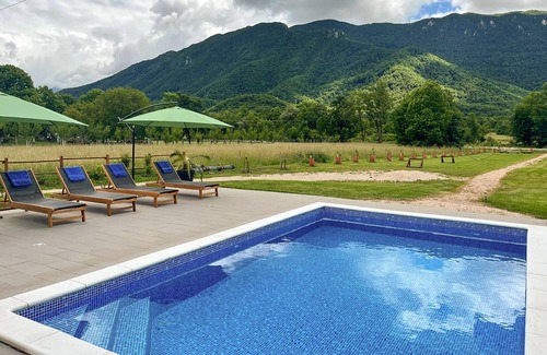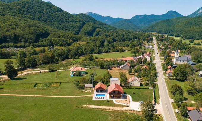 You don't need to travel far, as the idyllic surroundings offer you many nature experiences. There is a stream at the end of the property where you can stroll along and cast your fishing rod. Discover the nearby cycling and hiking trails to Velebit and the surrounding mountains, which offer you a fantastic backdrop. Discover the surrounding area full of entertainment, such as zip lines, caves, an adrenaline park and quad biking. You can go on day trips to the Plitvice Lakes National Park or plan swimming trips to the sea. You can also visit the Nikola Tesla Museum in Smiljan, just a few kilometres away.