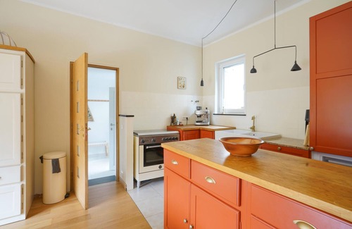 Welcome to your idyllic holiday home near Molini di Triora, a place full of tranquillity and natural beauty. This holiday home offers you the ideal retreat to get away from it all and enjoy the surrounding nature. The cosy interior invites you to relax and unwind. You can unwind in the light-flooded living area or watch a film together. In the open-plan kitchen with its warm colours, you can easily prepare delicious meals to enjoy at the large dining table.