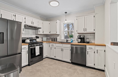 Welcome to The Foxhole! This cozy retreat in Charlotte, Rochester, NY, is just minutes from Lake Ontario’s shoreline. Featuring 3 comfy bedrooms with TVs, a well-stocked kitchen, onsite laundry, and a game room with a foosball table, it’s perfect for travelers of all kinds. Enjoy the pet-friendly, fully fenced backyard, connected porch, free off-street parking, and high-speed internet. Explore nearby parks, the Port of Rochester, and Seabreeze Amusement Park for an unforgettable stay!