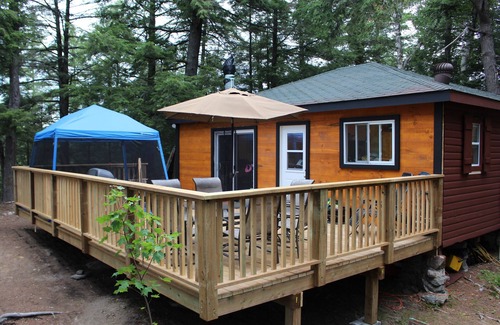 PEANUT ALLERGY ALERT i have a squirrel living on the island. I feed him and he hides and buries his peanuts all over the island .This newly renovated 3 Bedroom Cottage is located on a Stunning 1+ Acre Private Island. 3 Small but comfortable bedrooms, Newly Renovated Kitchen and flooring throughout. The Bathroom has been upgraded with a Brand New Composting Toilet and Shower Stall. All the comforts of home!! Enjoy your day swimming at your own small private beach with shallow entry and floating raft. Or Lounge on the comforts of a newly built 1700square foot dock. Fish/Swim/ Or have a FIre by the Lake!!! This island retreat is spoiled with many comforts of home. Hydro, Satellite Television, and High Speed Wireless Internet ! Watch the Sunrise from the comforts of the cottage or take The Stars in at night by the Dock!!