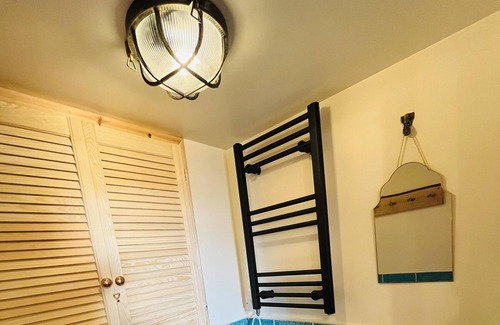 The first floor has a sumptuous master bedroom suite with roll top bath and en-suite toilet. There is a velvet arm chair that folds down into a kids single bed in this room.