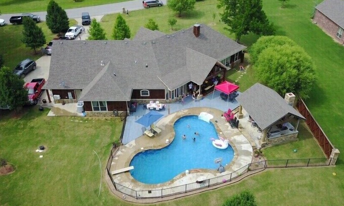 3-bedroom Rustic Charm Home Outdoor Kitchen, pool Hot Tub + 2 fireplaces is located in Wagoner County. 3-bedroom Rustic Charm Home Outdoor Kitchen, pool Hot Tub + 2 fireplaces provides accommodation, featuring Balcony/Terrace, Wellness Facilities, Barbecue/Outdoor Cooking, among other amenities. This House features Balcony/Terrace, Wellness Facilities, Barbecue/Outdoor Cooking, to make your stay a comfortable one.