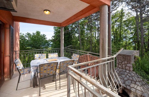 In an ideal location on the Opatija Riviera, this large and pleasant vacation apartment in an apartment building welcomes you. The furnishings and equipment are good and family-friendly and promise you the ideal setting for your relaxing vacation. In addition to everyday vacation activities such as cooking, eating and playing, the private pool in the garden offers you the opportunity to swim and cool off.