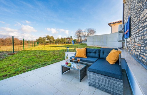 Travel to the southern hinterland of Istria and enjoy this beautiful vacation home that shines in a modern light. Comfort is a top priority here and promises you an unforgettable vacation, surrounded by stylish and high-quality furnishings. Enjoy the interplay of classic building elements such as stone and wood as well as the bright color scheme. Explore the cozy rooms on two floors and enjoy many hours outdoors. The veranda is not only the ideal place for your meals, but also for relaxing in the hot tub while your children discover the private playground in the garden. End the evenings with a delicious BBQ and make plans for your next vacation days.