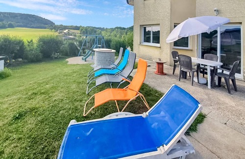In rural, naturally beautiful surroundings, this spacious vacation home welcomes you and your loved ones. Inside you can expect comfortably furnished rooms, which make a homely impression and provide the perfect setting for relaxing stay with the whole family. Feel at home in the peaceful atmosphere and enjoy delicious meals while overlooking the countryside.