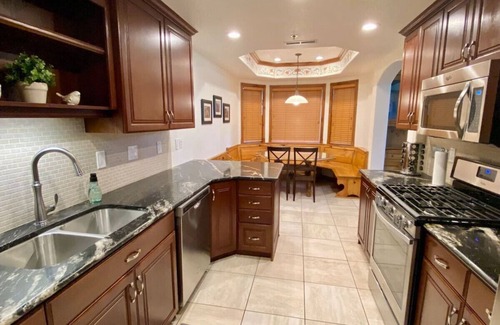Each bedroom has it's own full bathroom, either attached or right next to it. Spacious master bedroom! Plenty of space and seats to gather together in the kitchen and living room.