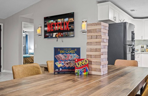 In Port Saint Lucie, this lovely house offers three bedrooms, beautiful surroundings, and plenty of chances to unwind and explore. Imagine yourself lounging by the private pool, soaking up the sun and cooling off with a refreshing dip. Gather your loved ones in the fully stocked kitchen, where you can whip up delicious meals and enjoy them together at the dining table. Curl up on the couch and enjoy a movie night on the smart TV, or challenge your friends to a friendly game in the game room.