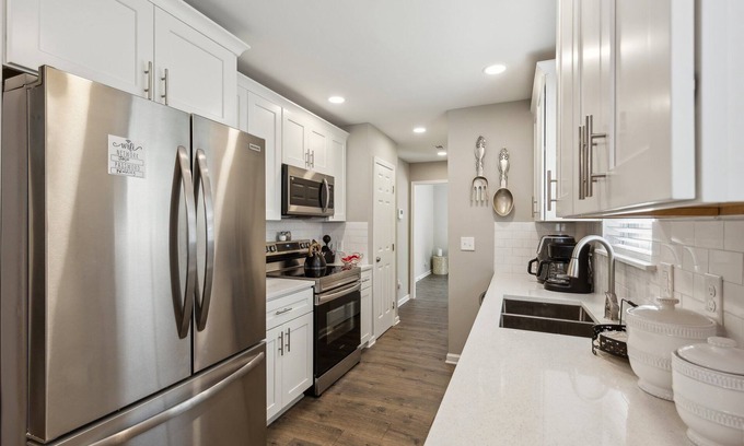 Located in Riverdale is this lovely three-bedroom getaway. Nestled just a short 18-minute drive from the thrilling Atlanta Motor Speedway and a 19-minute drive from the renowned Porsche Experience Center, this property offers the perfect home base for your Georgia adventures. Unwind in the comfort of your free WiFi-enabled smart TV, or take advantage of the convenient in-unit washer and dryer. The fully stocked kitchen, complete with a stove, oven, refrigerator, and all the necessary appliances and utensils, makes it easy to prepare delicious meals. After a day of exploring the nearby Camp Creek Marketplace, retreat to the soothing comfort of your air-conditioned or heated home, where you'll find two bathrooms, towels, and basic toiletries. With a desk and chair for any work needs, as well as ample parking, this vacation home has everything you need for a memorable stay in Riverdale.