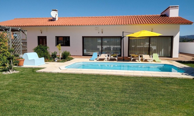 Spacious detached modern air-conditioned villa with swimming pool, situated in the village of Acipreste, near Alcobaça (8-minute drive) surrounded by fruit trees and grapevines with views over beautiful countryside and the Serra dos Candeeiros hills in the distance make this the perfect location for a relaxing holiday.