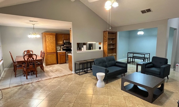 Welcome to your home away from home! This charming 3-bedroom house is located in a lovely, quiet neighborhood just minutes from shopping, dining, and everyday conveniences. Inside, you'll find a warm and inviting space with comfortable furnishings, a fully stocked kitchen, and all the essentials for a relaxing stay. Each of the three bedrooms offers a cozy retreat, perfect for winding down after a day of exploring. One of the standout features of this home is the spacious backyard — fully fenced and ideal for morning coffee, outdoor meals, or letting your pets enjoy the open space. We’re proud to be pet-friendly (with approval), so you don’t have to leave your furry family members behind. With fast Wi-Fi, a smart TV, and in-home laundry, everything you need is here for a comfortable and convenient stay.