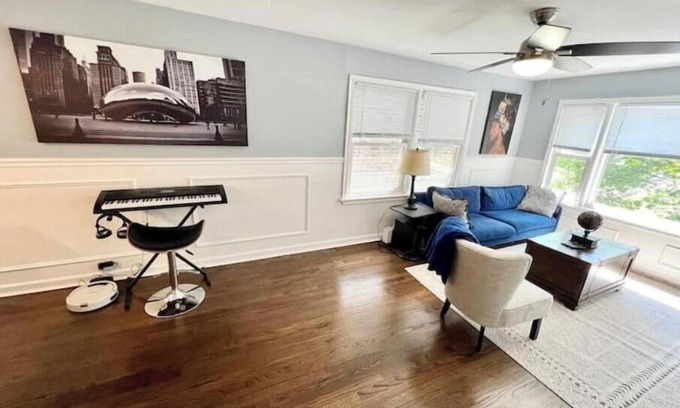 This guest favorite apartment in historic Humboldt Park offers the perfect combination of comfort and convenience. Just 10-15 minutes from Downtown, the Medical District, Wicker Park, Logan Square, and Ukrainian Village, it’s ideal for guests visiting for festivals, concerts, sports events, conferences, weddings, or family gatherings. With grocery stores nearby and both street and gated private parking, you’ll enjoy being close to everything while staying in a peaceful, sought-after space!