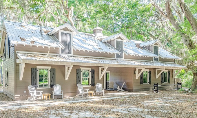 3-BR Dogtrot Cottage w/dock, pool, & private firepit on Emma's Driftwood Farm is located in Darien. 3-BR Dogtrot Cottage w/dock, pool, & private firepit on Emma's Driftwood Farm provides accommodation, featuring Parking, Balcony/Terrace, Oceanfront, among other amenities. This Cottage features Parking, Balcony/Terrace, Oceanfront, to make your stay a comfortable one.
