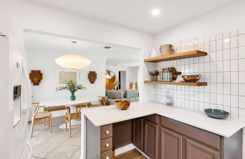 Our beautiful mid-century villa has been updated but kept its charm. The home has been thoughtfully designed with special details throughout with an emphasis on artistry and quality.