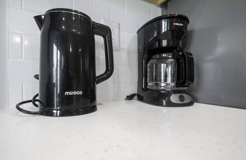 We offer keyless entry with a secure code provided before check-in and off-street free parking. There will be enough coffee and tea for a few days, along with free wi-fi, of course. There are smart TVs in the living room and primary suite for connecting to your services.