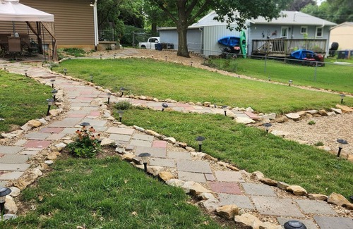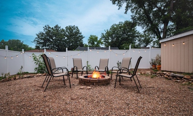 Our 3BR Urban Retreat includes 1 King, 1 Queen, 2 twin beds & 1 Queen sofa sleeper. There is 1 full bath, an office space w/ desk & many amenities to make you feel right at home. Relax in the large beautifully landscaped backyard equipped w/ fire pit, grill, & outdoor dining area. Explore nature trails, Mary's Lake & 3 parks just a few blocks away. Located 3 mi. from KU & downtown Mass. St & under 5 mi. from the hospital. Ideal for families, friends, business & traveling nurses. Conveniently located off K-10 hwy.