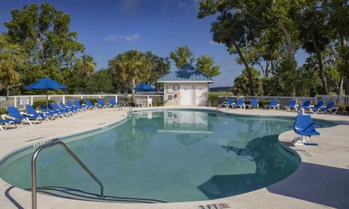 Discover a serene getaway on Hilton Head Island with breathtaking views and abundant activities for all ages. Located near the Intracoastal Waterway, you'll enjoy the largest pool on the island, a lazy river, and a kids splash pad. Nearby, explore Fish Haul Creek Park and Driessen Beach Park for nature and relaxation.