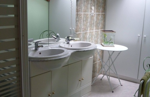 A large terrace with barbecue and garden furniture provides direct access to the living and dining room through a large picture window. This room is equipped with a kitchen area in which are provided fridge freezer, oven and gas hob, extractor hood, microwave, dishwasher, washing machine and all the dishes. Two sofa beds facing the television separate the dining room with a very large table. Finally, a toilet and a sink are at the bottom of this same room. Upstairs, two bedrooms with a 140 cm bed each precedes the bathroom with a shower, sink and hairdryer. At the end of the corridor is the separate toilet. On the second floor, another bathroom with a shower and a sink and two bedrooms with a 140 bed and one of 90 each