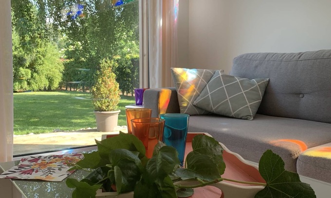 New for 2020: a large living room with flat screen TV, open onto the garden through a large picture window, direct access to the terrace.