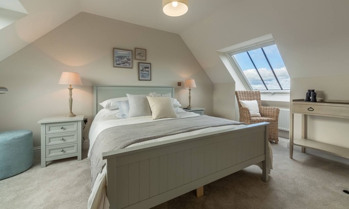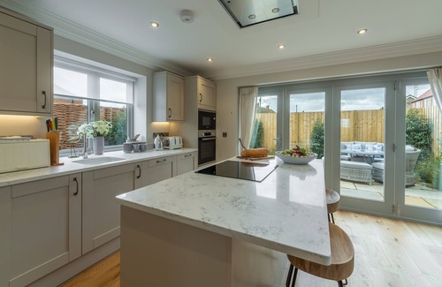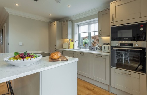 Built in 2019, by a respected local builder to the highest of standards, 3 Knights Cottages is at the end of a terrace of three brick and flint cottages set back from the coastal road enjoying uninterrupted views across the fields to the coast in the distance. The interiors have a calm palette co-ordinating soft colours on the walls with the furniture and furnishings, together creating a very warm, relaxing and welcoming vibe. On the ground floor the contemporary open-plan dual aspect sociable living space flows from one end of the cottage to the other and has the warmth of underfloor heating. Comprising a beautiful fitted kitchen and large island with granite worktops, an adjoining dining area beside bi-folding doors to the rear garden and the cosy sitting area at the front of the cottage has a glimpse of the coast. Just off the living area you have a very useful utility room, perfect for storing wet coats (and dogs) and muddy boots, and there's a handy cloakroom in the entrance hall. The three bedrooms (king, double and twin) are set over two floors and all have wall-mounted televisions. The stunning dual aspect master suite on the top floor has the best views to the coast, so you may well fight over that one! Outside, the gardens run to three sides, but you will no doubt spend most of your time in the fully enclosed south facing garden at the rear of the cottage, where you can take a seat and catch the sun's rays for most of the day, relaxing in the knowledge that children and dogs are safe to play.