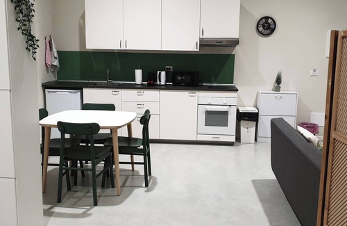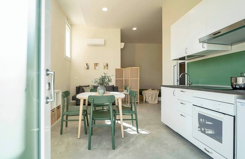 Each studio is thoughtfully equipped with a private bathroom for your convenience, a sleek and modern kitchen perfect for preparing your favorite meals, and a cozy sleeping area with beds that can be customized to suit your preferences upon request. Whether you're traveling alone, as a couple, or with a small group, these flexible sleeping arrangements cater to your individual needs.