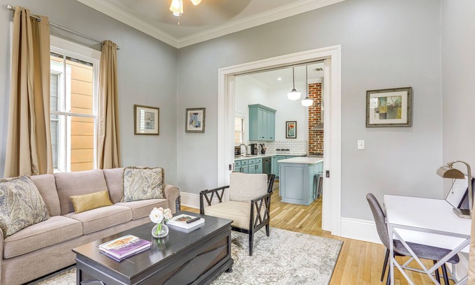Escape to beautiful New Orleans and book this renovated 1920s side hall home. The charming 2-bedroom, 2-bath vacation rental features original elements, including pocket doors, large wood windows, hardwood floors, and 12-foot ceilings. The location also places you just a short streetcar ride to major attractions like the CBD, the French Quarter, the National WWII Museum, and live music on Frenchmen Street!