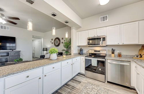 The vibrant city of San Antonio is a click away at this vacation rental condo! During your stay, enjoy easy access to attractions like Six Flags. And if you're looking for historic spots, remember the Alamo! After a day of adventure, take a dip in the community pool then retreat to the 2-bed, 3-bath condo, whip up a home-cooked meal in the kitchen, and settle in front of the TV to watch your favorite shows.