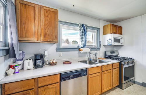 Spend peaceful evenings watching the sunset over the mountains at this quaint and cozy Pueblo, CO, vacation rental. Located on a corner lot in a quiet neighborhood, this 3-bedroom, 1-bathroom home is a great base camp for outdoor adventures and fun in the city. You’ll have all the essentials, like a fully equipped kitchen and a desk for getting some work done.