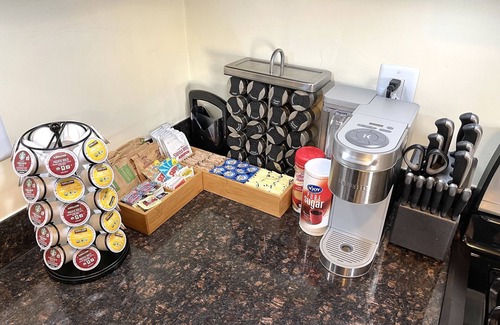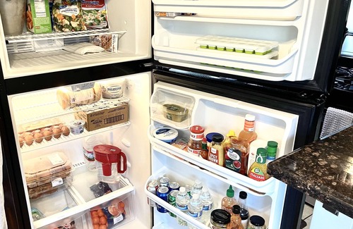 Queen Bed in Bedroom and Comfy Sofa Bed in the Living Room, Sleeps 4 Adults Comfortably. Fully Stocked Kitchen and Bathroom with Everything You May Need. Linens, Bedding and lots more included, check out the Amenities List. Washer & Dryer Available Free of Charge, included are the Laundry Necessities.