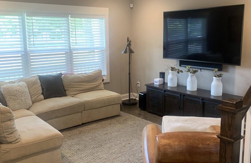 This Charleston style craftsman house is 3 mins right west of downtown Greenville, Sc. It is exactly 40 mins from Clemson if you like to hit up the football games! Or if you want to stay in and catch any games or movie nights you can watch on a 75inch tv. It sleeps 6 very easily. So come see downtown Greenville and eat at some of our favorite suggestions or commute to a tailgate in Clemson. We hope to see you soon!