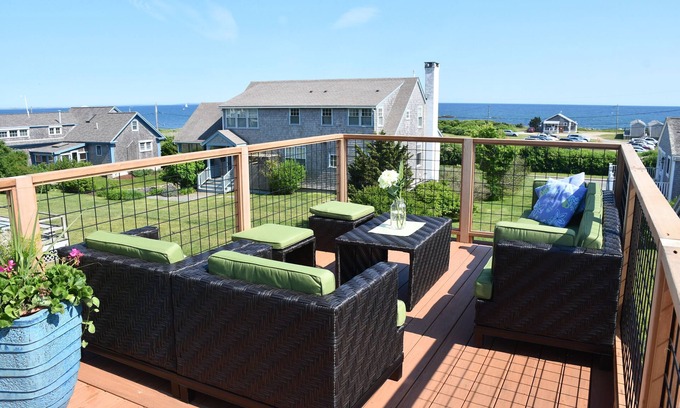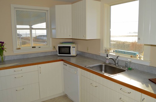 Enjoy the the natural beauty of Westport harbor. This comfortable ranch has a large kitchen that opens to a great room, perfect for entertaining. The kitchen includes a breakfast bar which seats five. The great room, with its 11’ vaulted ceilings with exposed beams and water views, has relaxed seating for eight and a dining table which seats six comfortably. Let the ocean lull you to sleep; two bedrooms and a bonus queen sized sleep sofa provides sleepspace for seven. In addition to the shower in the bathroom, there is an outdoor shower with hot and cold water. A washer and dryer is also available for your convenience. Whether its morning coffee on the front porch, afternoon beverages on the upper deck or dinner on the lower deck, you will experience beautiful views of the ocean, Richmond and Cockeast Ponds.