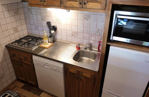 - A kitchenette with 4-burner electric hob, oven, fridge, dishwasher.