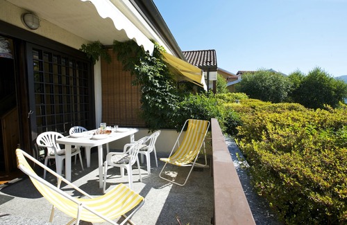 The two average furnished 2- and 3-room apartments are located in 1. OG a residence directly on the beautiful lakeside promenade with pool in a sunny location. Shops, bars and restaurants as well as the public sand beach are nearby - you only need your car for the varied cultural trips. The special charm of these apartments is, among other things, the numerous possibilities offered by the location of the residence: you can swim to the residencesen, about 9 mx 15 m large pool (weather permitting open from early June to mid / late September) Or go to the public sandy beach about 20 m away. The idyllic village of Feriolo is also reachable within a few minutes, so you can do the little things of everyday life on foot. You can park your car in the private underground garage (apartment "D") or in the garage (apartment "H") within the enclosed residence. In the parking lot of the apartment "D" a boat can be parked as an alternative to the car. Public parking is available in front of the residence. There is an additional garage as well as a parking space for bootstraders on request. There is also free wireless internet access in both apartments. 3-room duplex apartment "H" in the 1st. OG with approx. 65 m² living space, up to 4 persons + 2 children up to 12 years: 1. Level: entrance Living room with TV, fireplace, dream view and exit to the balcony Kitchen with oven Bedroom with single and double bed (single mattresses) as well as exit to the balcony Friendly bathroom with bidet and shower Approx. 10 m² large partly covered sunbath with awning and gigantic view of the lake, the Borromean Islands and the surrounding mountains 2. Level 2. Sleeping area in the attic with wardrobe bed (double bed with mattress). Bathroom with bidet, bath with shower and velux window